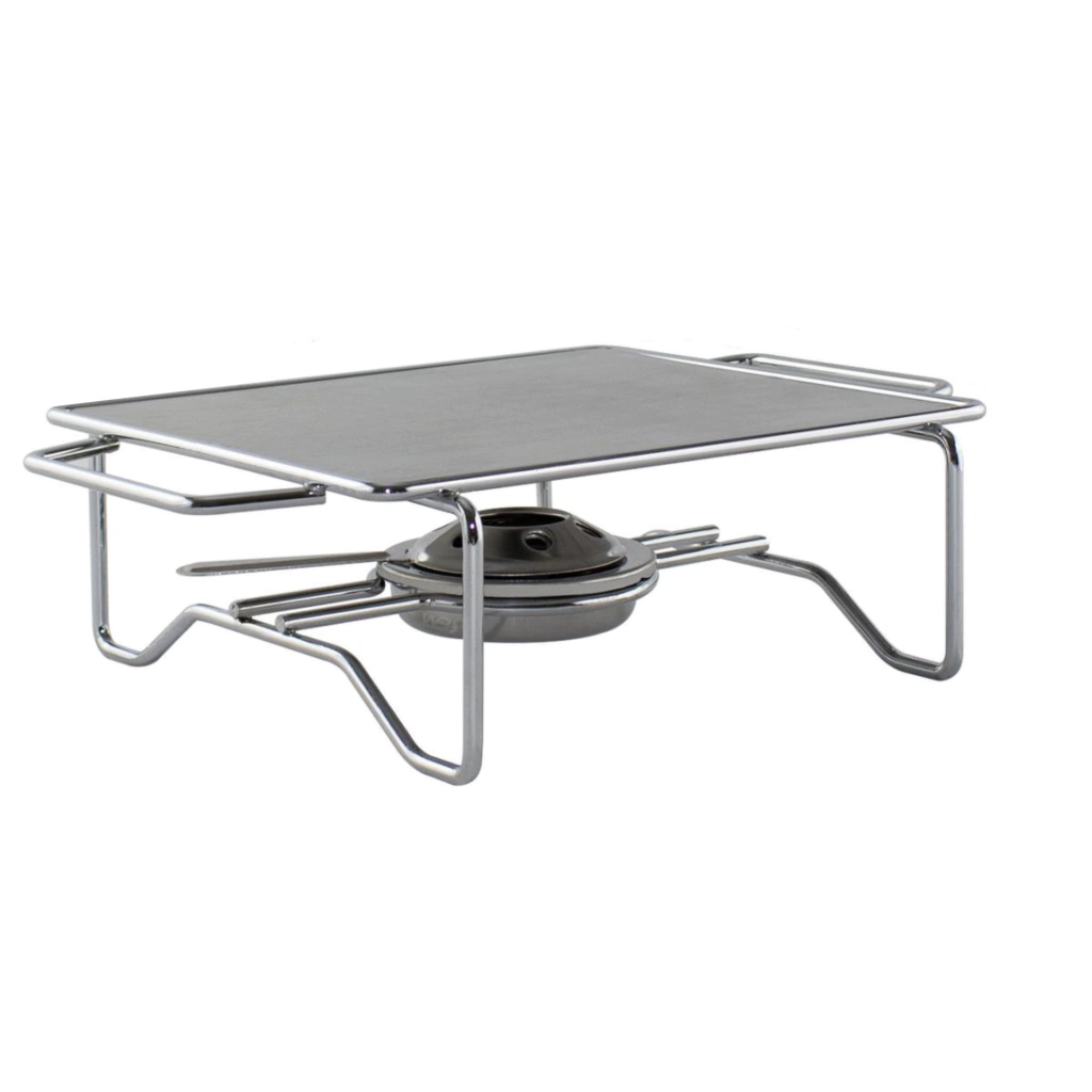 Rechaud com Chapa de Alumínio não pode ser usado para preparo direto de alimentos em sua superfície , servindo apenas para aquecer e manter a temperatura de panelas, sopeiras, caçarolas, formas e travessas de vidro como Marinex